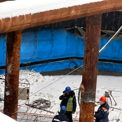 Гидроизоляционные материалыГидростаб защитно-изоляционная геомембранаГидроизоляция фундамента. Вместо привычного «тощего» бетона в зимних условиях защитно-изоляционная геомембрана Гидростаб | |||||
